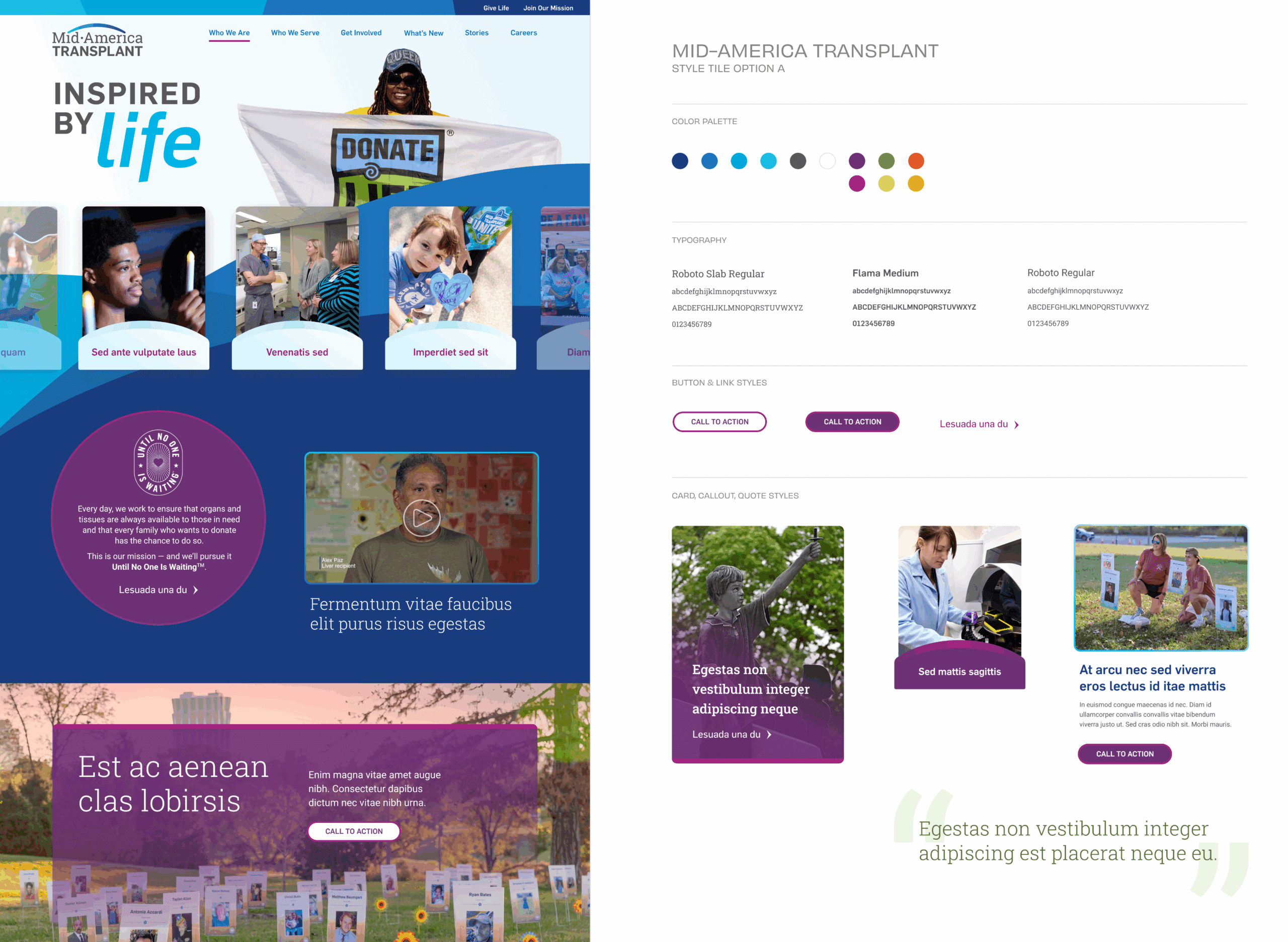 The Mid – America Transplant site redesign style tiles.